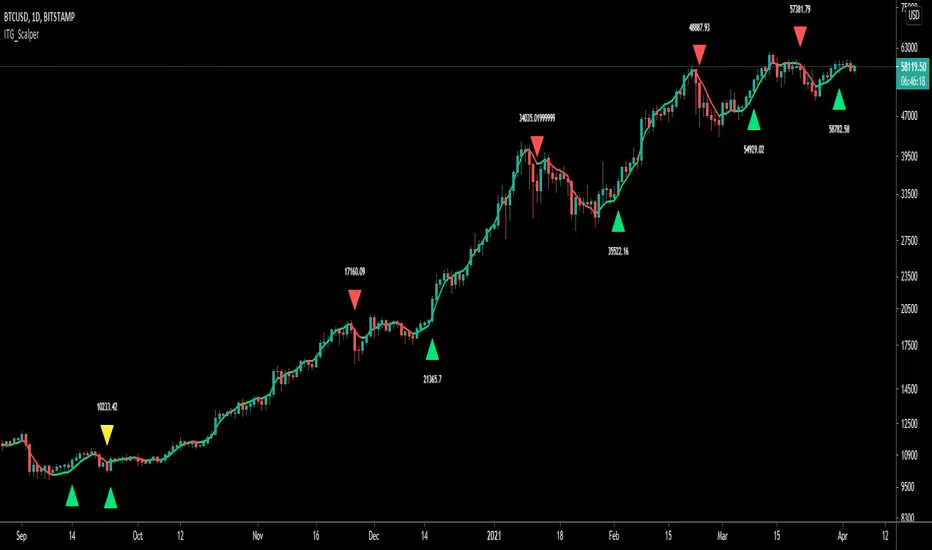 - Buy/Sell signal is only given on bar close.- Changed Buy/Sell signals from text to colored up/down triangles.