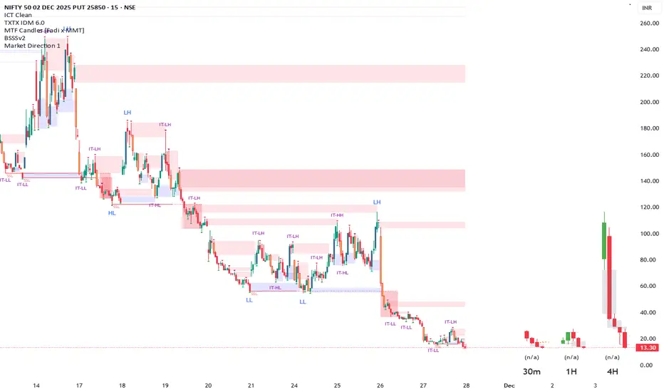 Market Direction 1 is a multi-timeframe bias-mapping tool designed to display the current and previous daily directional conditions directly on intraday charts. The script compares the relationship between recent highs, lows, opens, and closes to determine whether the market is showing a bullish bias, bearish bias, or consolidation relative to prior daily ranges.