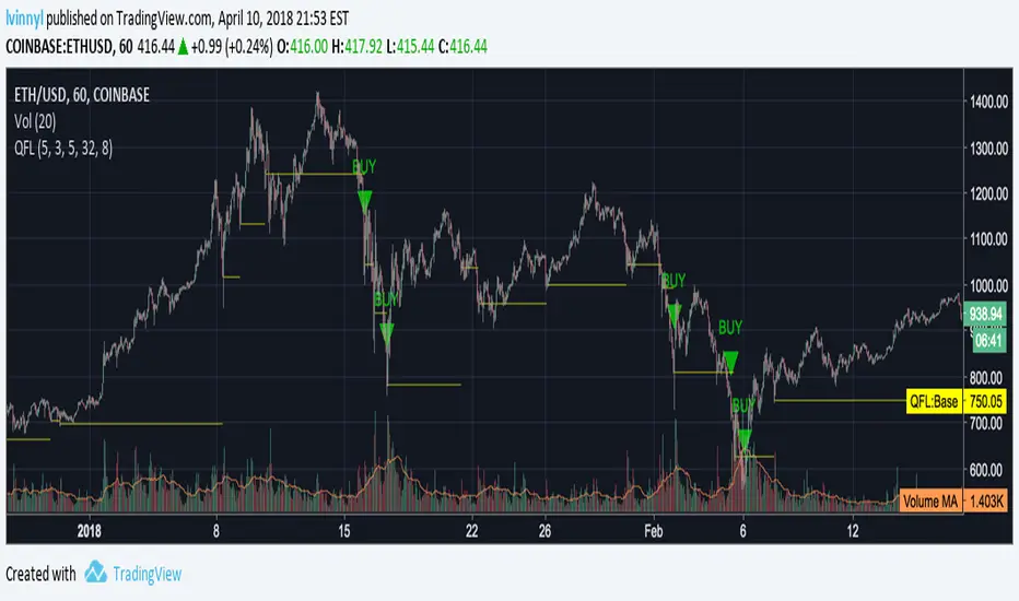 This script is an attempt to implement Quickfingers Luc's Base Breaking Strategy (steemit.com/@quickfingersluc) where it will detect bases using pivot low detection, panic selling detection (price momentum), RSI and percent below base thresholds to trigger an alert condition.