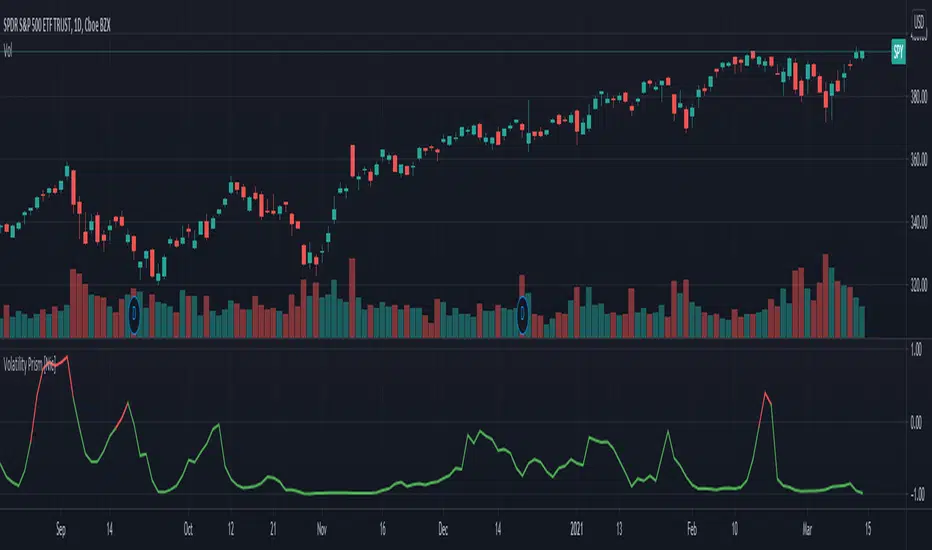 What is thisThe volatility prism tracks divergences in a security and its volatility index. This can be used to identify periods of heightened implied (future) risk.