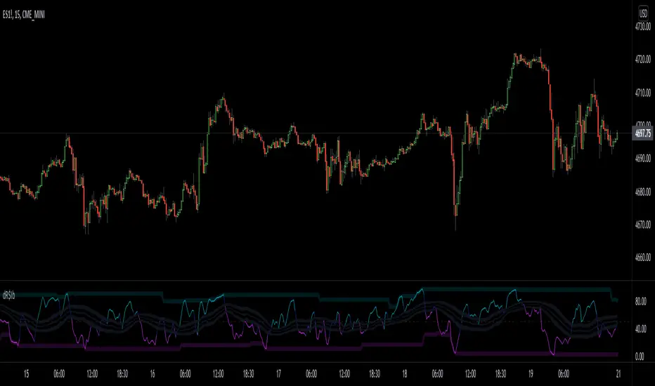 This little mashup of mine is called the Donchian RSI Bands. It consists of two RSI's, a Donchian Channel, & Bollinger bands, which can all be turned on or off depending on your preferences.