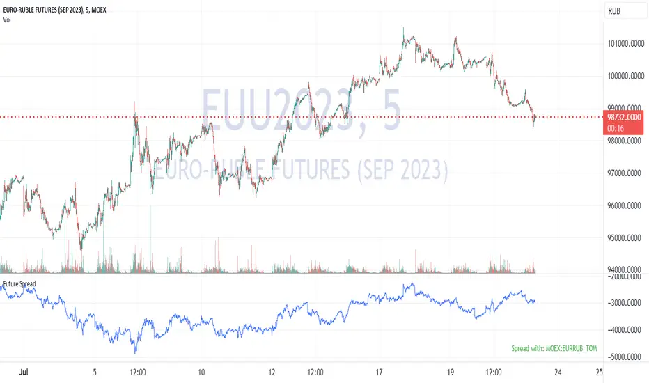 Indicator calculates spread between future and it's theoretical price baased on base contract, number of days to expiration and central bank key rate.