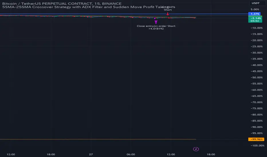 Detection of Sudden Movements: A sudden movement is detected when the closing price of the current candlestick changes by 2% or more compared to the previous candlestick. When this condition is met, the current position is closed to secure profits.