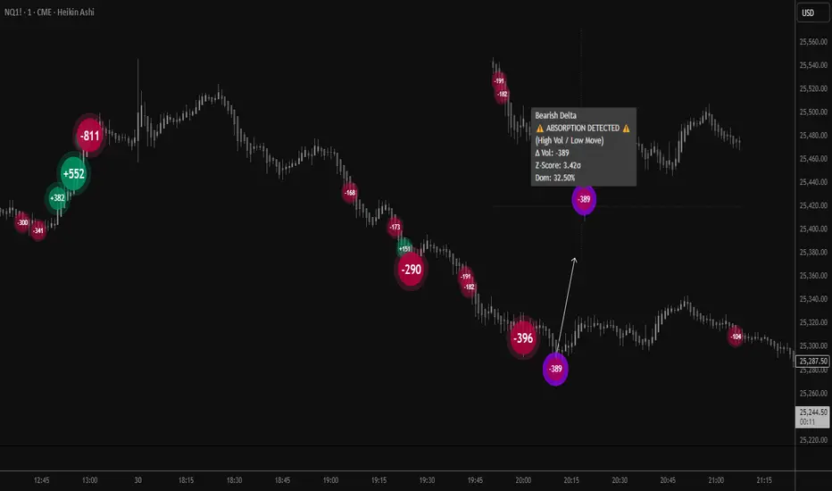 Delta Volume Bubble [Quant Z-Score + Absorption]