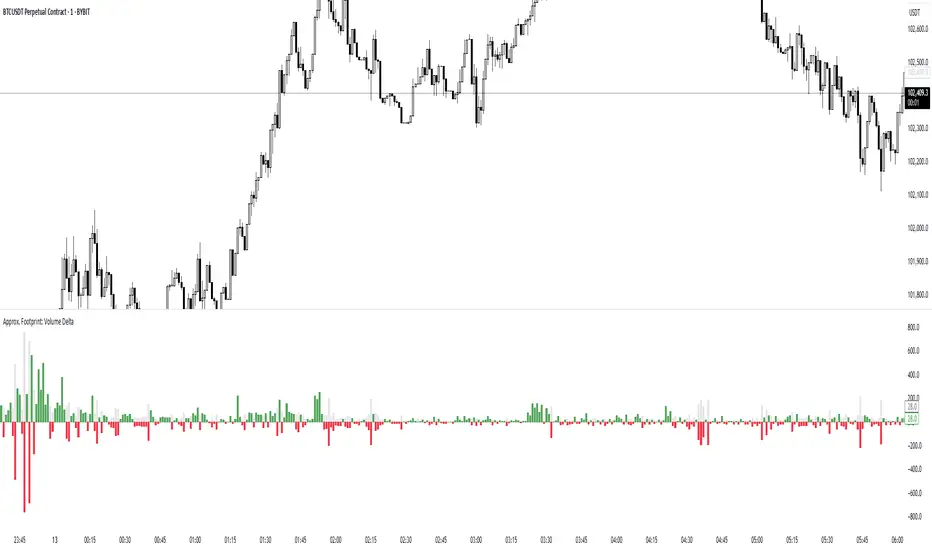 This indicator brings you a simplified “footprint” view by charting the volume delta—the imbalance between bullish and bearish volume—alongside total bar volume.