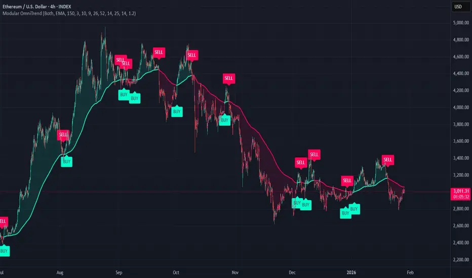 Modular OmniTrend Pro 2026 is a sophisticated, trend-following trading indicator designed for traders who value precision and multi-layer confirmation. Unlike standard indicators, this system utilizes a "modular confluence" engine, requiring multiple technical conditions—momentum, trend direction, and market participation—to align before issuing a signal.