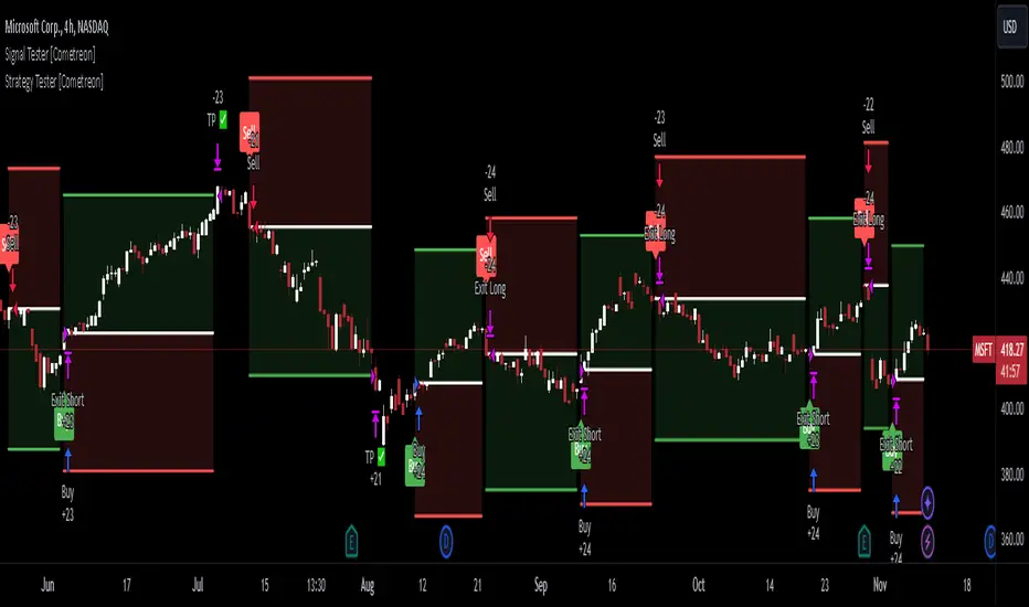 Signal Tester is a fast and intuitive tool designed to help you visualize and analyze up to 100 past trading signals directly on the TradingView chart. Whether your signals come from bots, communities, or your own strategies, this indicator is perfect for quick validation and real-time feedback.