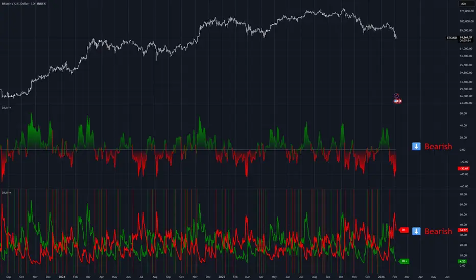 🔴 BEARISH: -DI > +DI (downward momentum stronger)