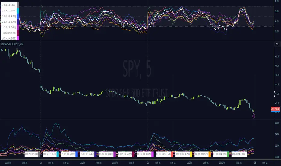 With this indicator it may become more apparent which sectors to begin investment in that are at lows compared to others, or use it to determine which stocks may be undervalued or overvalued against SPY.
