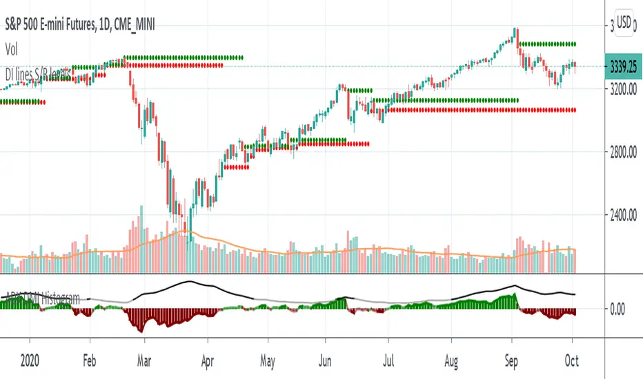 This can be used to compliment the Directional Movement Index if used as a standalone trading system. In addition to using the ADX and DI lines, a trailing stop can be used when the DI lines cross. If the plus line is above to show a buy signal, then the low of the price of when which the cross took place is used as a trailing stop. If the minus line is above to show a sell signal, then the high of the price of when which the cross took place is used as a trailing stop. This helps cut losses sooner whenever the price would end up going through these trailing stops or support/resistance levels yet the DMI system would show an upward or downward move.