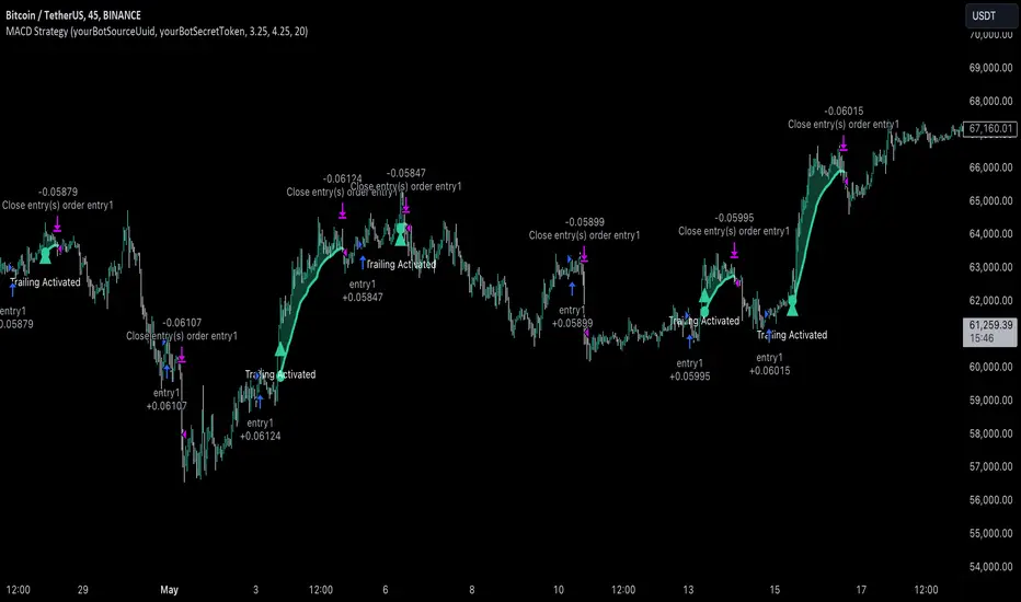 Apply to the desired timeframe between 30 min and 4 hours and chart (optimal performance observed on 45 min BTC/USDT).