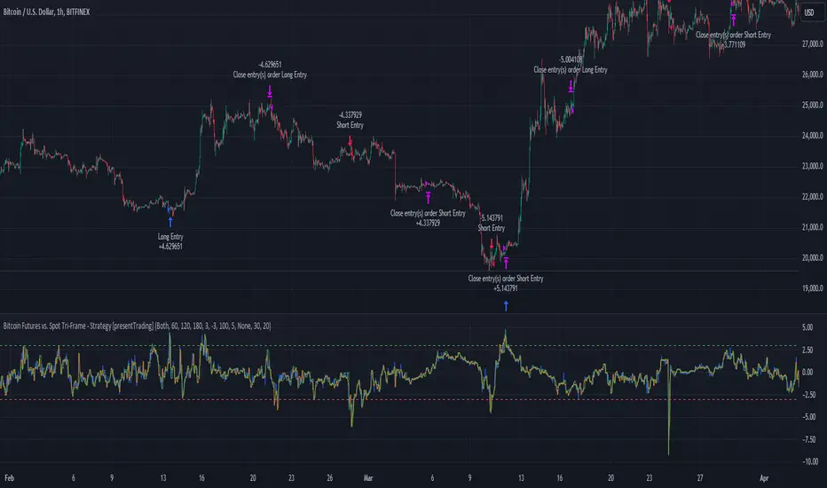 已更新 Bitcoin Futures vs. Spot Tri-Frame - Strategy [presentTrading]