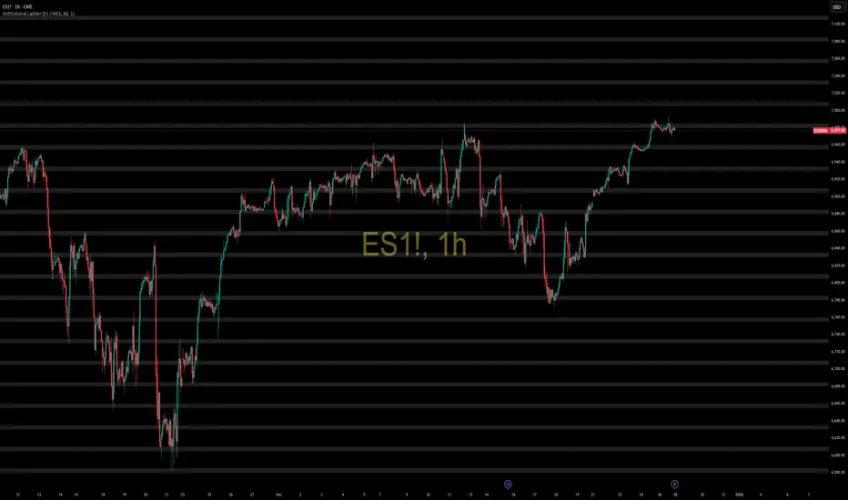 Institutional Ladder is a structural price-mapping tool designed to visualize fixed, pre-defined price intervals commonly used for institutional reference, risk framing, and contextual market analysis.