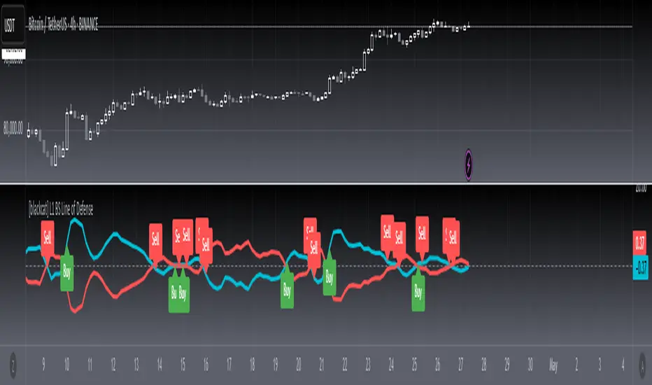 OVERVIEWThe L1 BS Line of Defense indicator analyzes price action and momentum to identify potential buying and selling opportunities. It uses a combination of weighted moving averages and price range analysis to generate defensive trading signals.