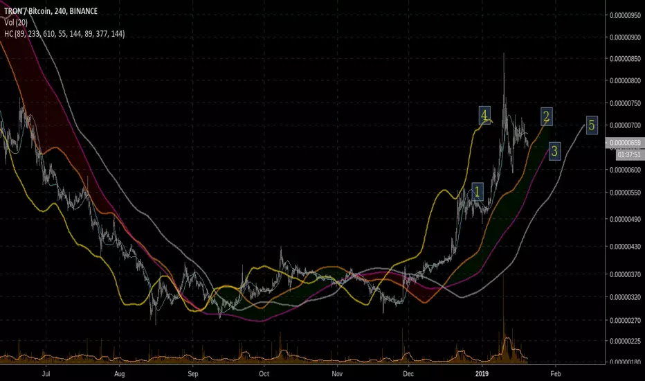 5. Forward span - 377 period Hull MA with positive offset of 144 periods.