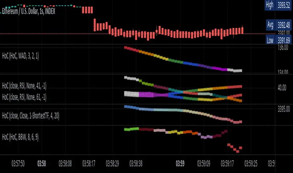 This is a simple wrapper script to generate 40 different series of information along an increasing candle length. It plots the last data point, and repaints on each new candle, allowing one to see variations within series' values as the timeframe increases. This POV is looking not across a depth of field, but the wave as if it were moving towards you. The goal ultimately is to find correlations on various timeframes in the y-plane, and the z-plane, as well as patterns of variation preceding price action.