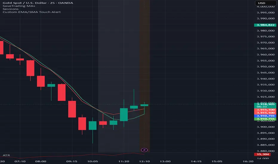 This Pine Script for TradingView is designed to help traders catch important short-term market touches on moving averages. It monitors both EMA (Exponential Moving Average) and SMA (Simple Moving Average) with fully customizable periods.Whether you are scalping, day trading, or monitoring pullbacks, this script notifies you when the price touches your selected EMA or SMA, giving you a timely opportunity to analyze or enter trades.