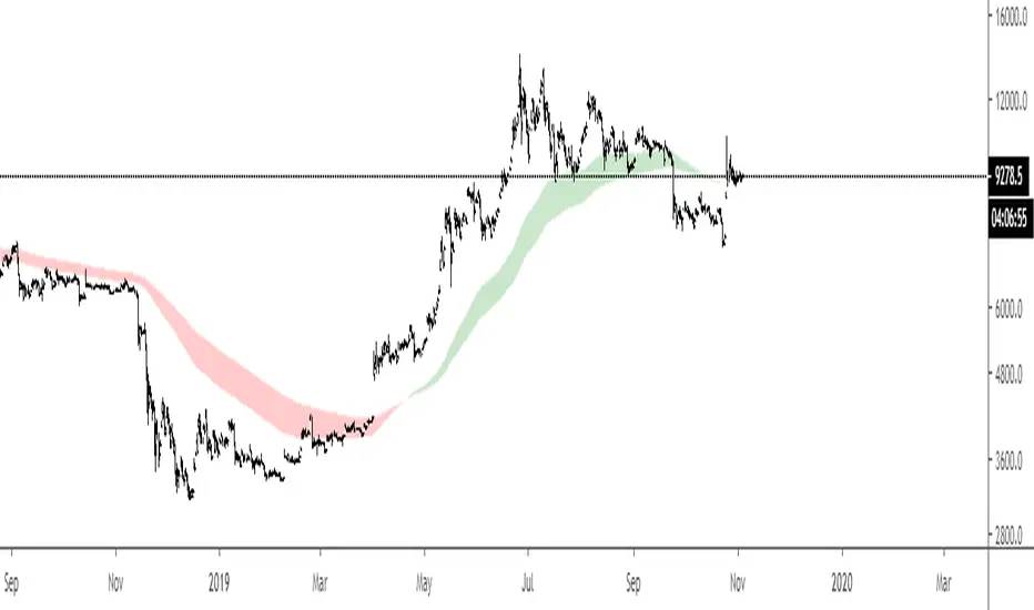 This is a 150 ema and 250 ema cloud. Ema's can act as support and resistance. Instead S/R being a single line on the chart S/R is seen more as an area on support and therefore a cloud is more suitable in defining the area around the 200 ema.