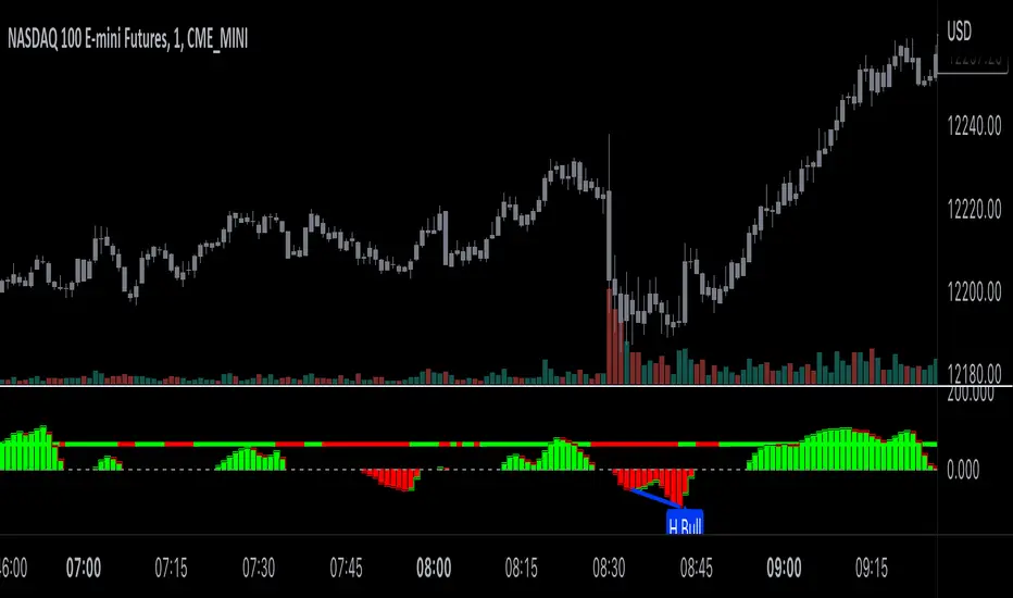 The indicator provides many elements to create confluence for trade set-ups. The border of the surge histogram changes color to visually signal when momentum is changing direction. A trade set-up of this would be seeing a red surge form followed by the border turning green. Other elements include horizontal line meters that change colors to show the story of price and momentum.