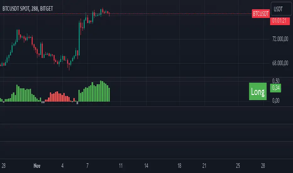 - Visual Indicators: Colored columns represent market status—green for "Long," red for "Short," and gray for "No Trade."