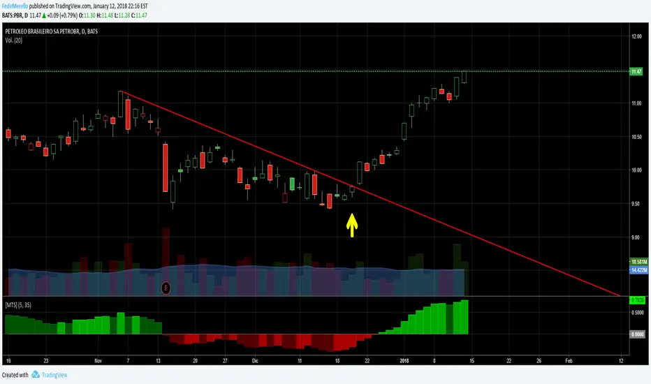 Basado en los conocidos EWO + MACD y con la configuracion de 4 colores lo considero uno de los mejores indicadores para visualizar divergencias o cambios de tendencia. Configuracion predeterminada con medias de 5 y 35 . Complemento ideal para lineas de tendencia basicas y cruces de medias simples