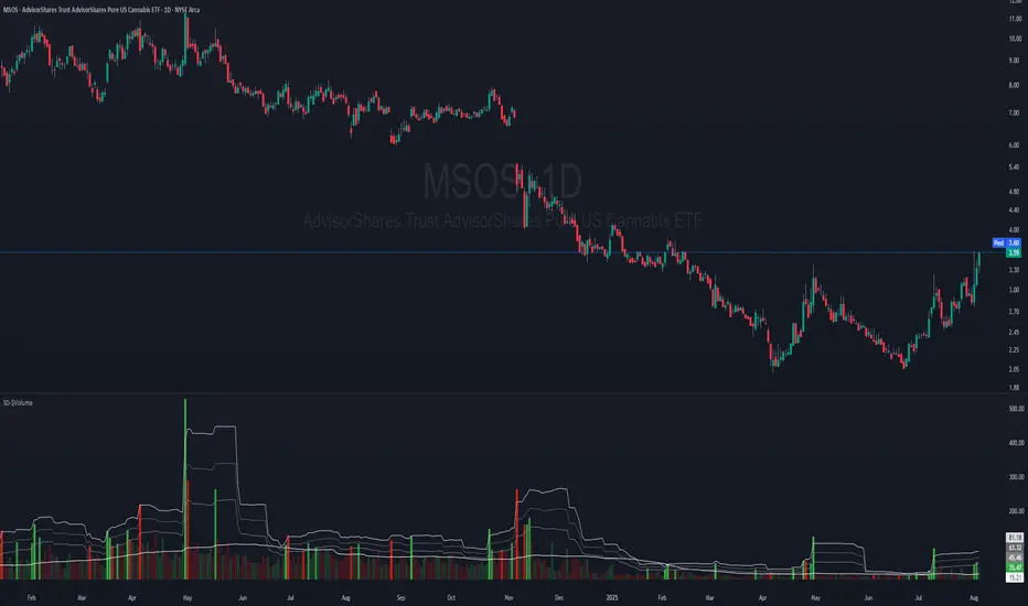 That's the whole idea behind the **Dollar Volume Standard Deviation (SD $VVOLUME)** indicator. Instead of just counting shares, it tracks the **actual dollar amount** ( also refered as Dollar Volume) changing hands. This gives you a much clearer picture of the real financial power behind a price move. It helps you see when the "big money" is truly stepping in or backing off.