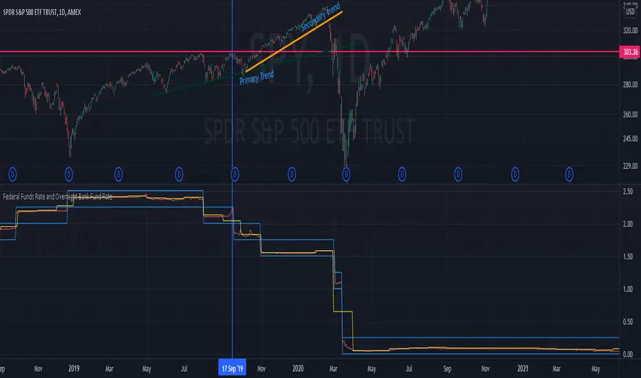 The indicator includes the lower and upper bound target rate set by the Federal Reserve.