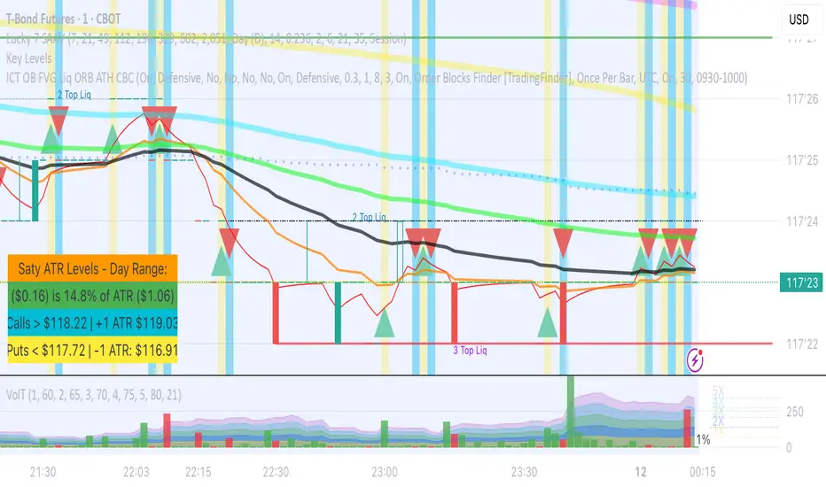 VolT is conceived to expose and alert volume volatility.Using 21-candle moving average volume values compared to the current candle volume, you can graphically see the volume as it comes in - as a percentage of the historic 1X volume moving average.