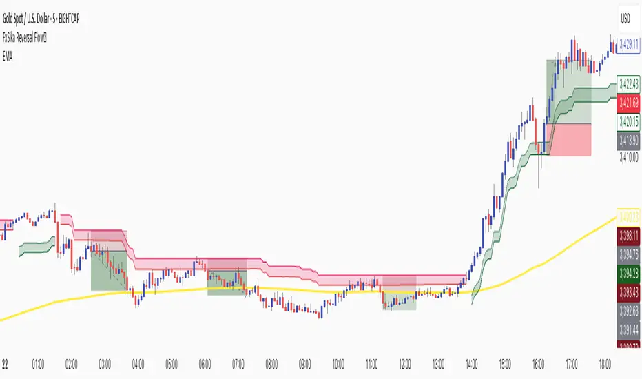 The FxSika SuperTrend Zone™ is a dynamic zone-based indicator that enhances the traditional SuperTrend concept by displaying two key structural layers:Primary Trend Line: The main directional guide, calculated using ATR and a volatility multiplier.