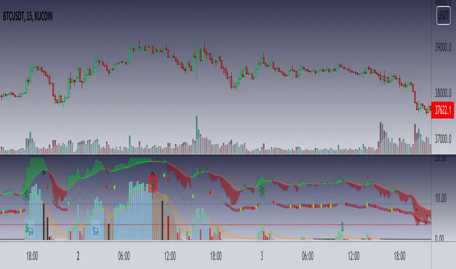 This indicator focus on buying activity by big players and is built for LONG or SPOT, shorter can still use it to determine when to exit short (if smart money appear on a significant TF you may not enter/stay in a short).