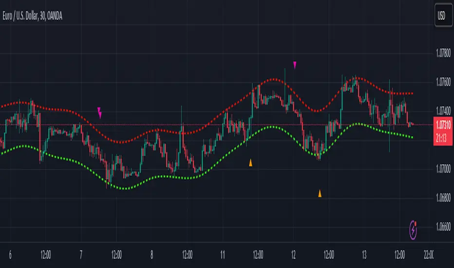 This two SMAs were added to the original indicator Nadaraya-Watson to predict the exact points where the price will change direction or will re-test the trend to continue on.