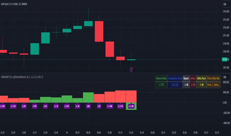 // - "Delta Pace" indicates the speed at which volume delta changes, which can signal