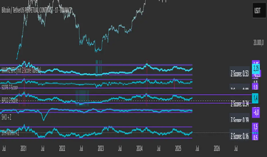 This indicator visualizes the Short Term Holder Market Value to Realized Value ratio (STH-MVRV) and its normalized Z-Score, providing insight into Bitcoin’s market cycle phases and potential overbought or oversold conditions.