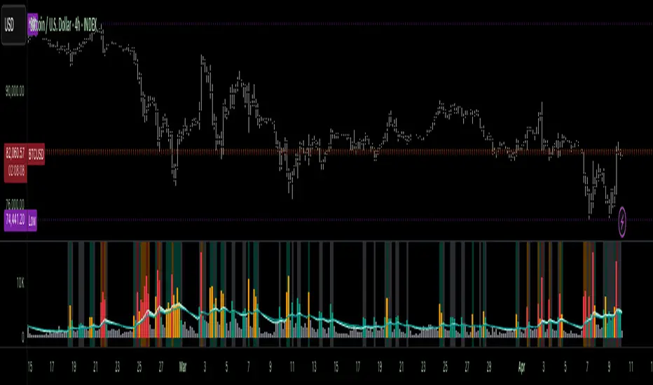 ⓩ ZVOL transforms raw volume into a statistically calibrated heatmap using Z-score thresholds. Unlike classic volume indicators that rely on fixed MA comparisons, ZVOL calculates how many standard deviations each volume bar deviates from its mean. This makes the reading adaptive across timeframes and assets, in order to distinguish meaningful crowd behavior from random volatility.
