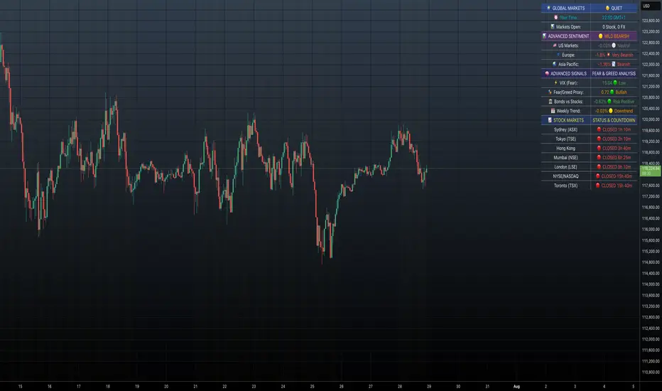 Result: One comprehensive dashboard showing when to trade and market mood across all time zones!