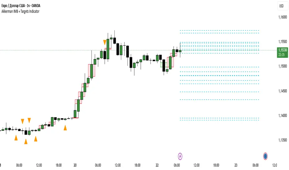 The Akkerman IMB + Targets Indicator is a powerful tool for traders who use the Smart Money Concept (SMC) methodology for intraday trading. This indicator combines several key elements of technical analysis, such as IMB (Imbalance) zones, liquidity zones, and intraday targets, to help traders identify significant levels on the chart for potential entry and exit points.