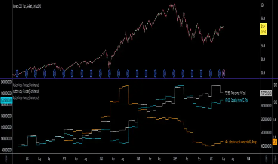 This script allows the user to build custom groups and combine the same financial data from 40 different symbols simultaneously and plot it data as a total or as an average.