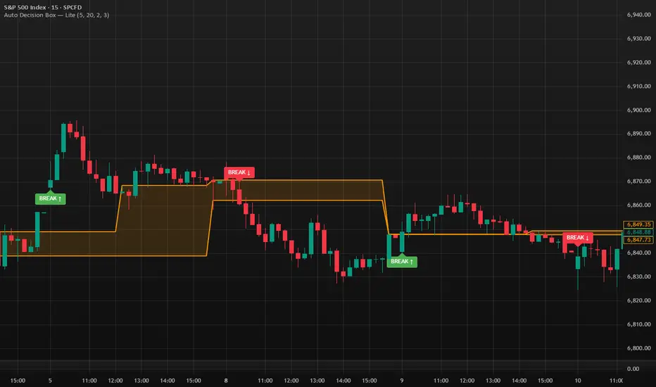 Simple educational indicator that visualizes consolidation "decision boxes" on a higher timeframe after impulse moves.
