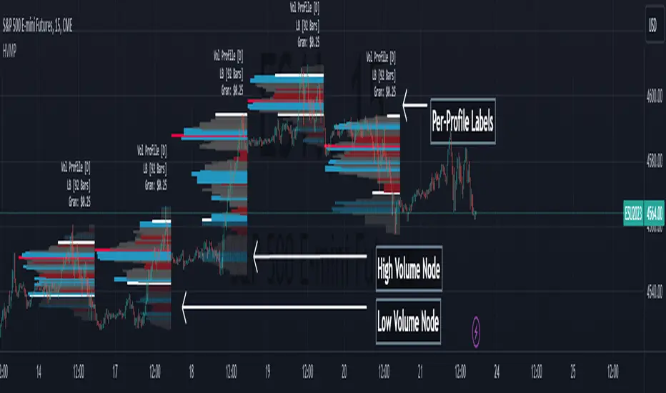 HVMP is only for historical data, you can get a live profile with the same Node Identification using VMP (Volume Market/Profile). The indicator that this one is based on.