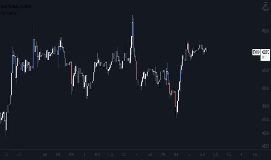 This script colors bars whenever their volume has exceeded more than a standard deviation (or multiples of it) from a given amount of bars in the past.