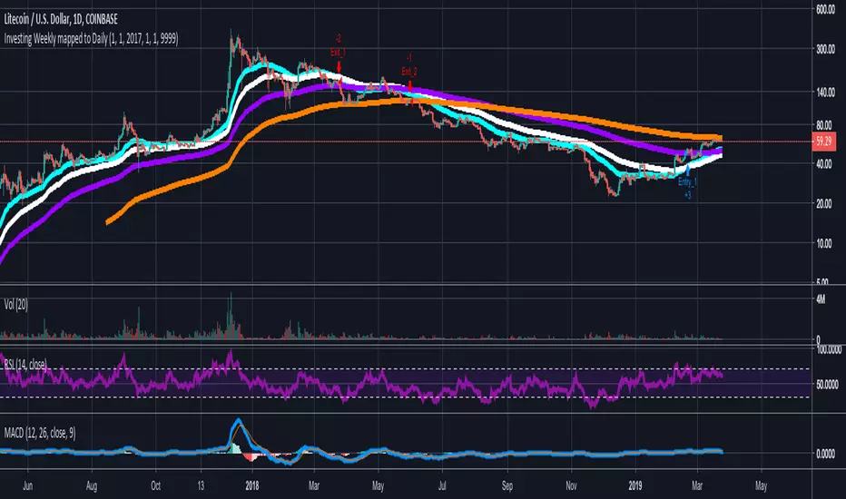 I have basically taken the EMA 12/26/52 from the weekly and transferred them over to the daily (mathematically they are not exact, but for me they are close enough).