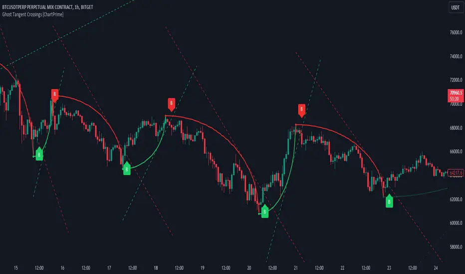 To use Ghost Tangent Crossings (ChartPrime) simply add it to your chart and adjust the lookforward to your taste. From there you can adjust the color of the zig-zags and enable or disable any of the visual features. We have included both wick and body pivot types to accommodate most trading style. From there, you are all done and ready to trade!
