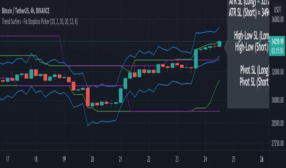 Simply select which stop-loss you would like to use in the settings and the suggested stop-loss will be displayed on the chart for Long and Short positions.