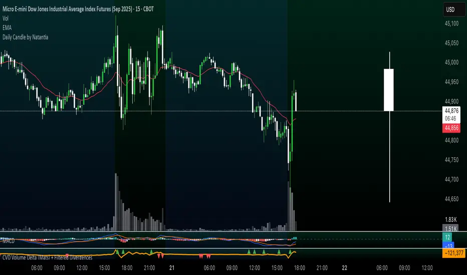 Dynamic Updates: The candle updates on the last bar, with wicks drawn to reflect the daily high and low, providing a clear snapshot of the day's price movement.