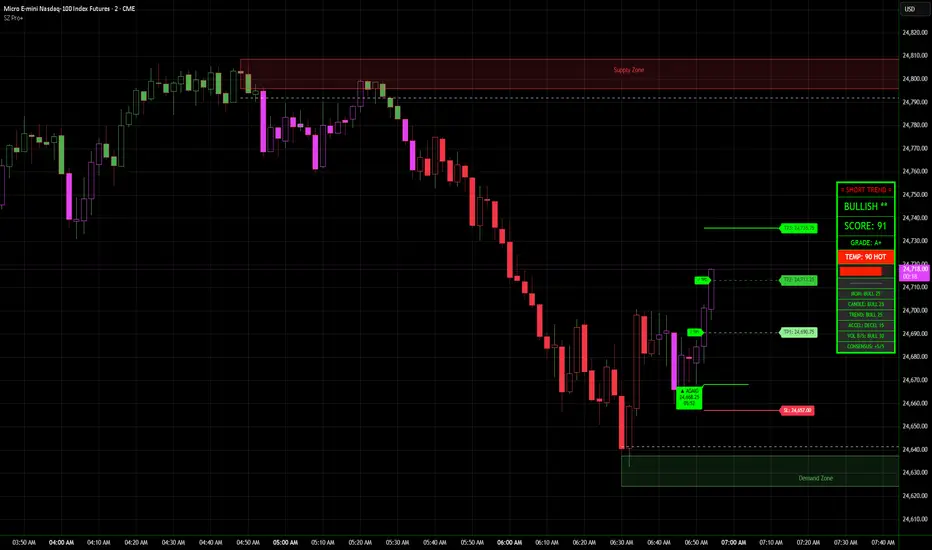 When multiple systems align — for example, a bullish reversal inside a demand zone while the dashboard reads BULLISH — you have high-confluence conditions.