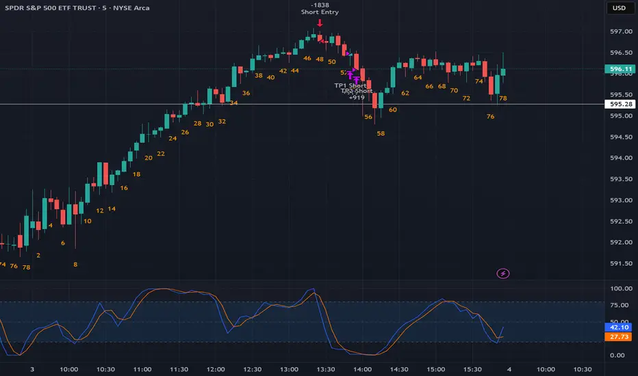 This strategy has been specifically fine-tuned for SPY. As with any trading system, its performance can vary across different instruments and market conditions. The user notes that to potentially maximize profits, especially in trending scenarios where the current "Extreme K" based TP2 might exit prematurely, it is advisable to explore and integrate other indicators or alternative take-profit methodologies. Dynamic approaches like ATR (Average True Range) trailing stops or trend-following exit signals could be considered for managing the second portion of the position.
