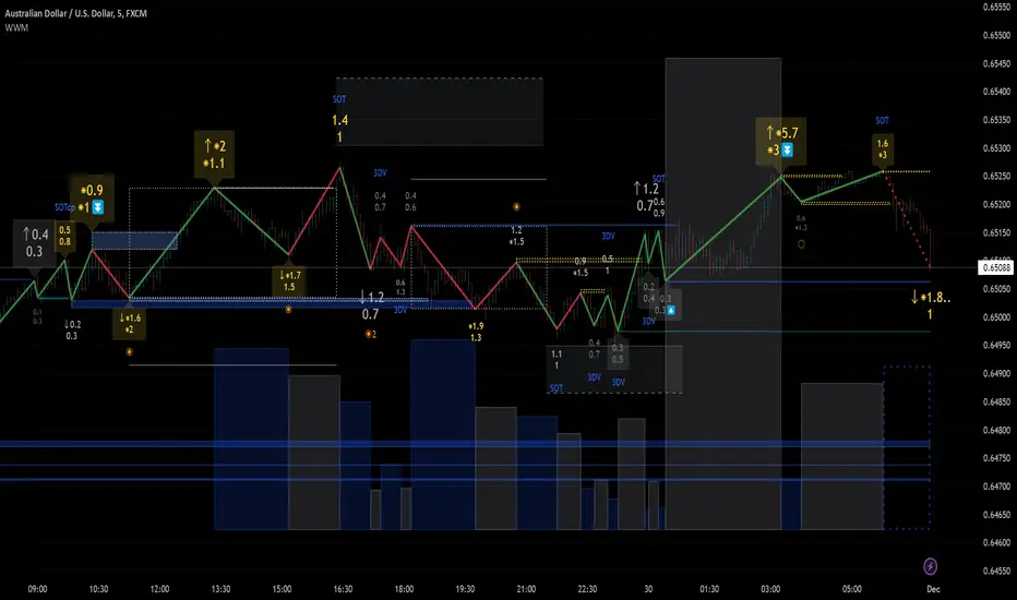 - Wave Volume / delta price : Displays Wave Volume / delta price.
