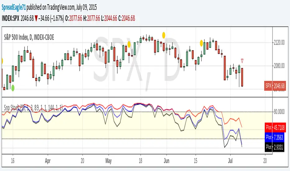 Basically, watch the 20 and 80 crossovers. However, the settings of the three stochastics correspond to Fibonacci numbers 55, 89, and 144.