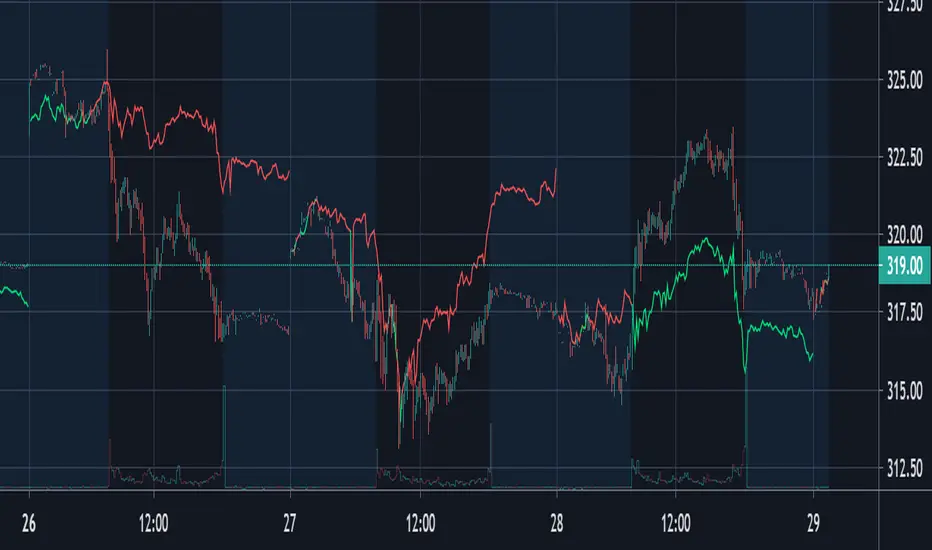 Shows an instrument's sentiment in a day (or week) compared to the market (SPY default). The Red line shows bearish sentiment compared to the market and the green is bullish. Technically this works like a proxy for Alpha/Beta factor.