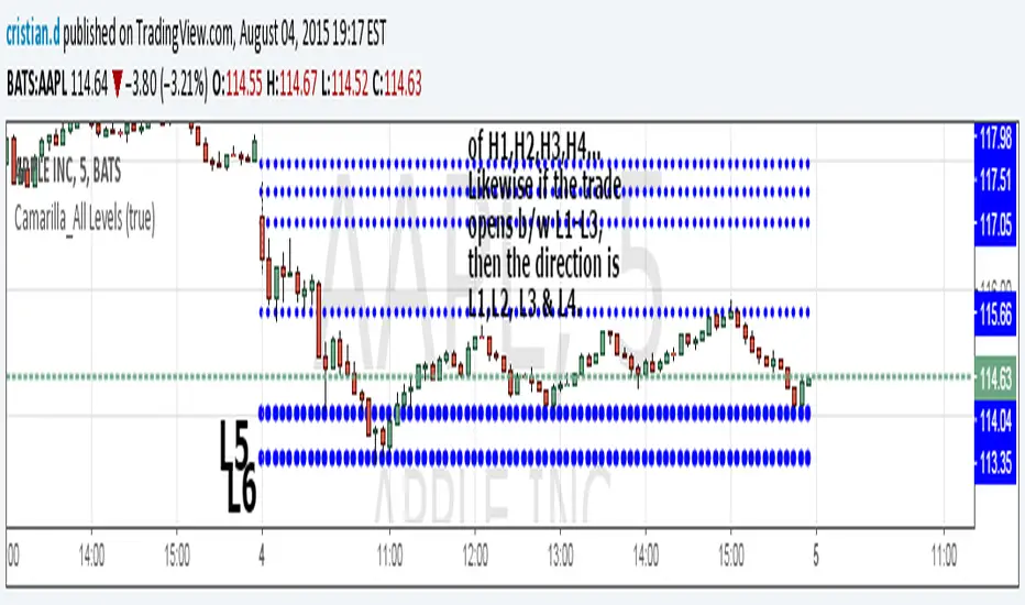 I am a big fan of Camarilla Pivots so I thought the missing 5 and 6 levels with be useful sometimes.... like with big moves when you don't know how low or high can it go once it passed the final levels of SR (H4 and L5 in Camarilla case). Well, today's free fall of AAPL would've been stopped by the L5 and 6.$HTTPS://WWW.TRADINGVIEW.COM/CHART/WXPCE8MK/#